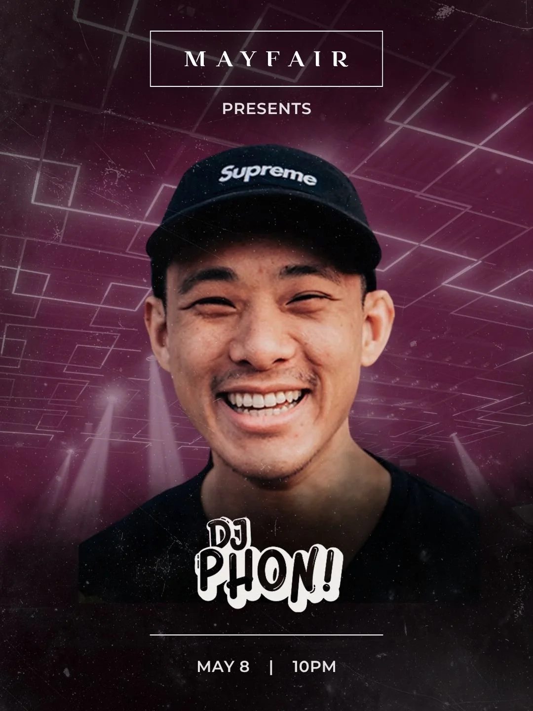 Back to All Events DJ Phon Friday, May 8, 2026 10:00 PM 11:59 PM Mayfair Nightclub & Terrace (map) Google Calendar ICS