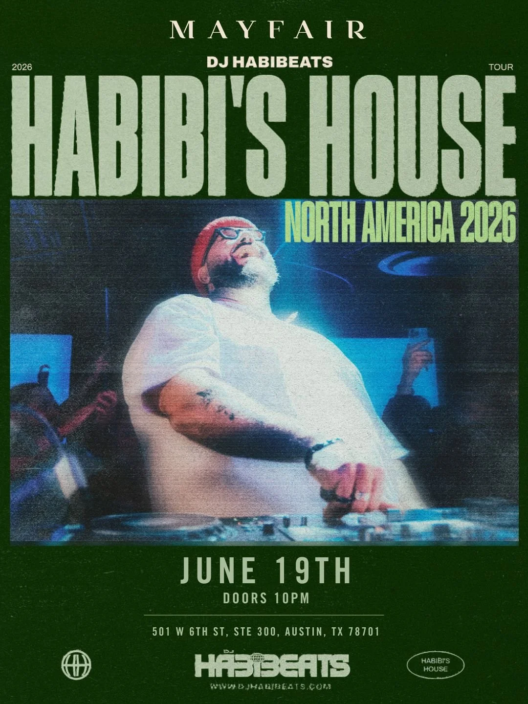 Back to All Events HABIBEATS Friday, June 19, 2026 10:00 PM 11:59 PM Mayfair Nightclub & Terrace (map) Google Calendar ICS Tickets VIP Tables