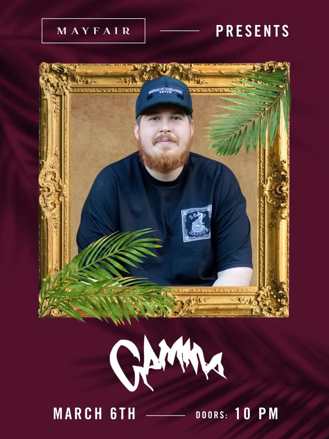 Back to All Events Gamma Friday, March 6, 2026 10:00 PM 11:59 PM Mayfair Nightclub & Terrace (map) Google Calendar ICS