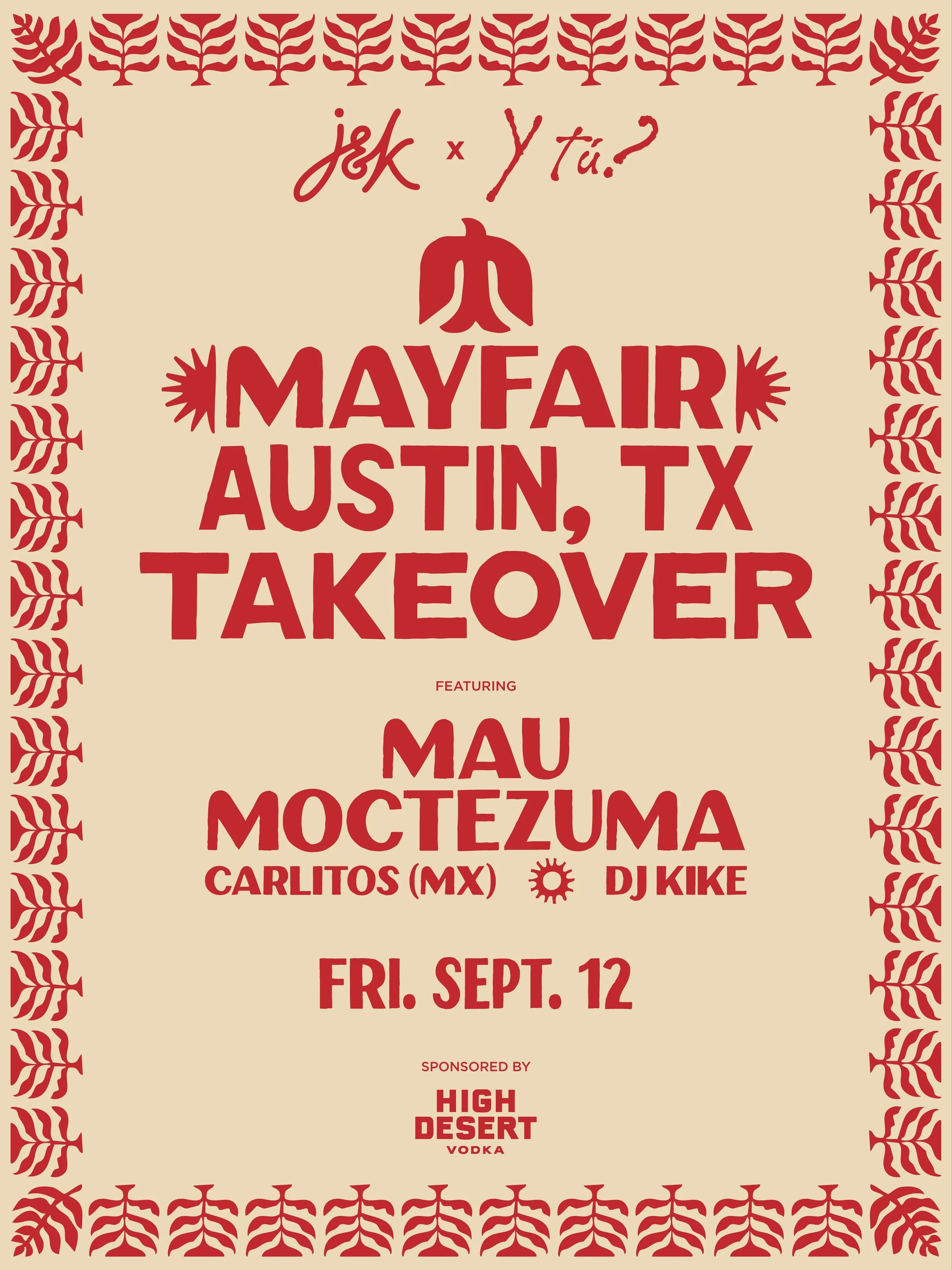 Mau Moctezuma Friday, September 12, 2025 10:00 PM 11:59 PM Mayfair Nightclub & Terrace (map) Google Calendar ICS Tickets VIP Tables